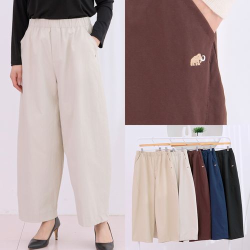 코끼리 면 통바지 와이드 밴딩 자수 9부 감성