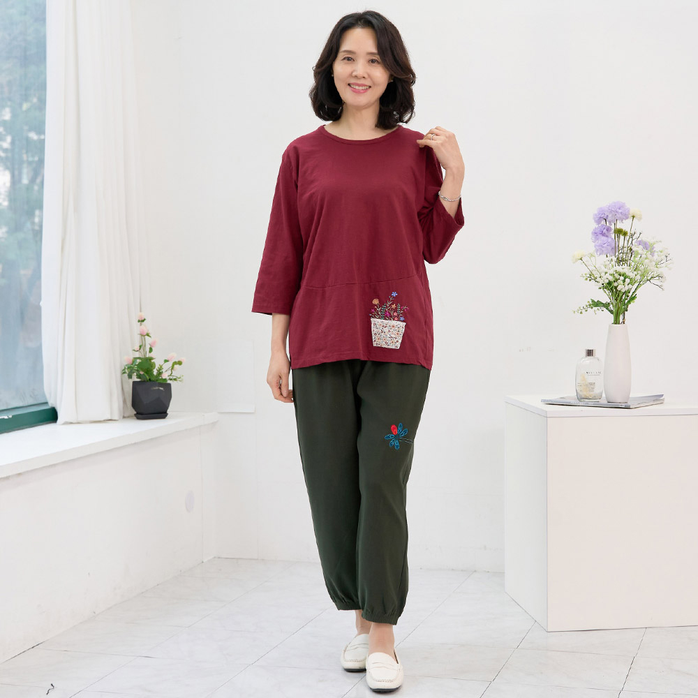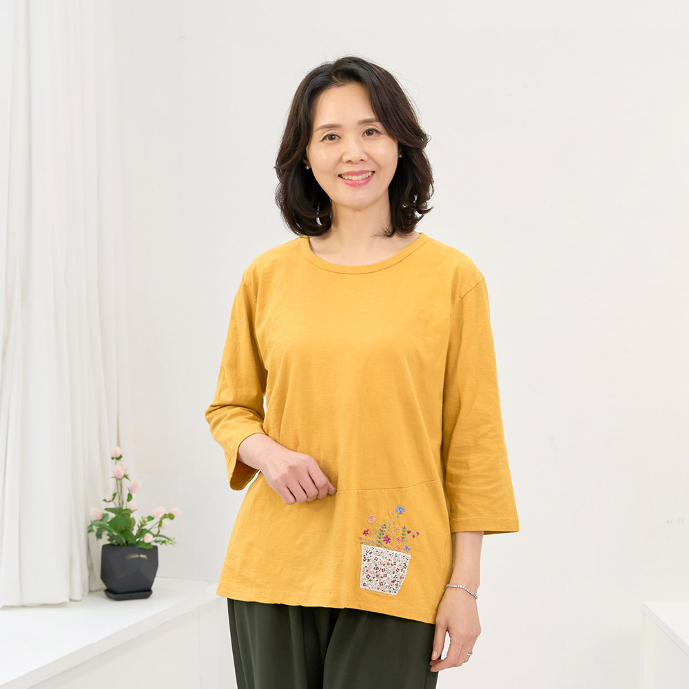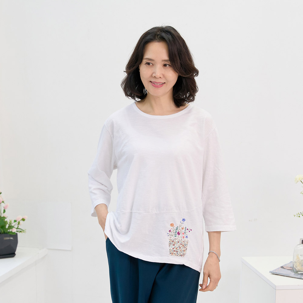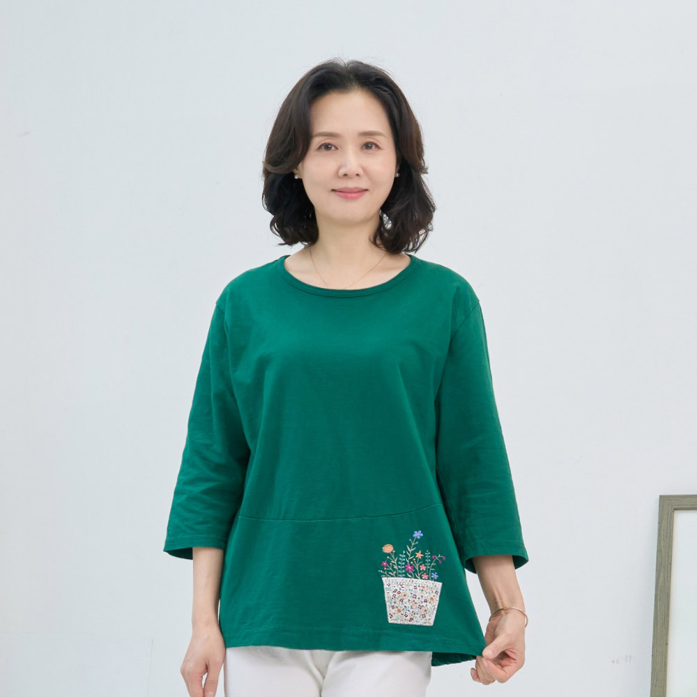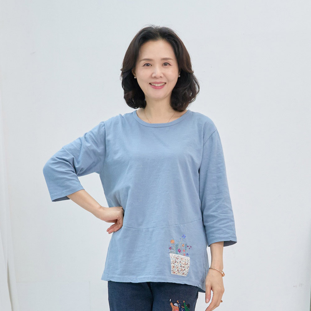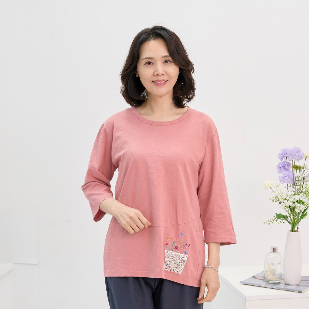 꽃바구니 면 티 국내생산 면100 칠부 간절기 여름