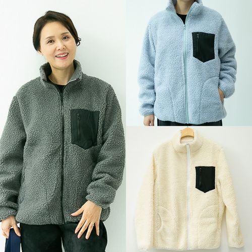 - 인조 양털 주머니 자켓 뽀글이 지퍼 후리스
