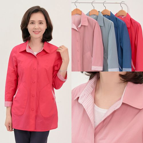 - 줄 배색 자켓 국내생산 99까지 바람막이 단추