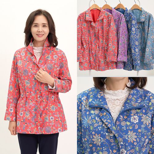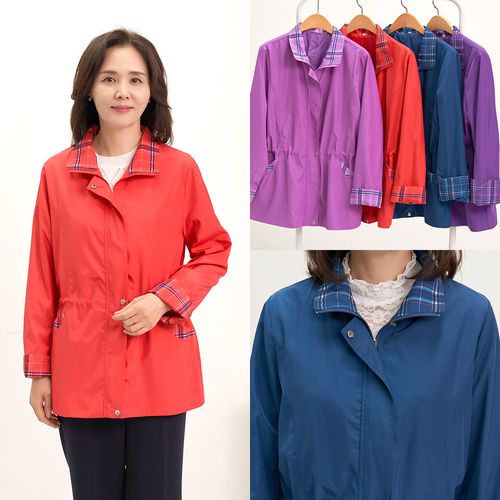 - 체크 배색 사파리 자켓 국내생산 허리 조절 바람막이