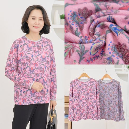 - 빅 페이즐 카라 티셔츠 기모 겨울 할머니 꽃무늬
