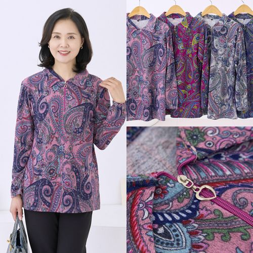 - 엄마옷 마미소 할머니 반집업 티 국내생산 꽃무늬 기모 겨울 할머니 빅사이즈 40 70 마담 중년 여성 옷