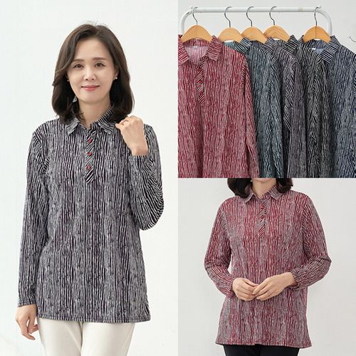 - 들꽃 카라 티셔츠 긴팔 반집업 겨울 꽃무늬 할머니