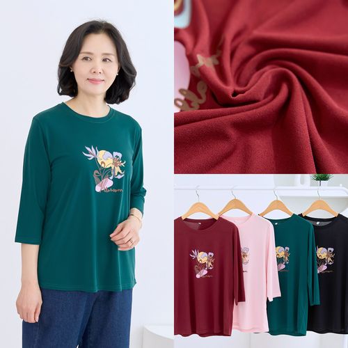 - 달꽃 라운드 티셔츠 국내생산 7부 봄가을 기본