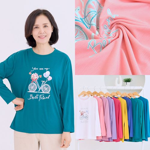 - 자전거 면 티셔츠 긴팔 간절기 라운드 데일리