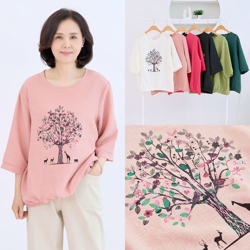 - 나무 티셔츠 7부 간절기 라운드 데일리