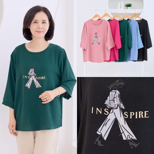 - 나들이여인 티셔츠 간절기 라운드넥 데일리티