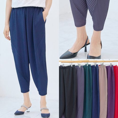 - 사선 플리츠 배기 바지 국내생산 여름 주름 쭉쭉