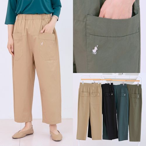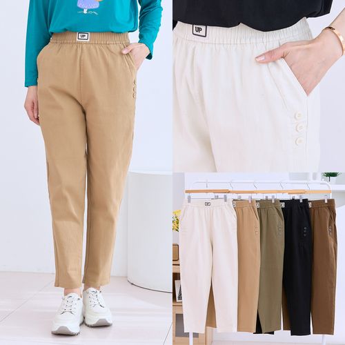- UP 면 배기 바지 밴딩 단추 포인트 패치 세미