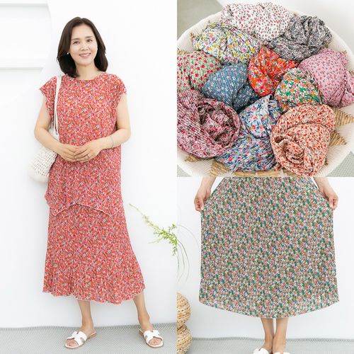 - [한정 SALE] 쭉쭉 투피스 주름 플리츠 치마 세트 홈웨어 시원