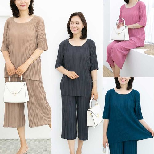 - 쭉쭉 플리츠상하세트 상하의 세트 한벌 시원한 와이드팬츠