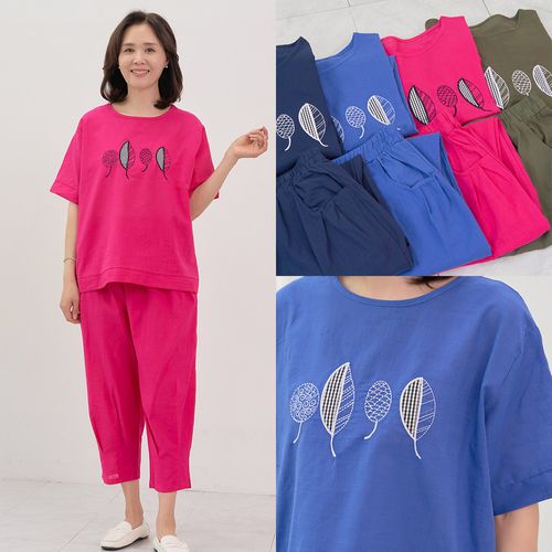 - 유니크 면 마 상하벌 상하 세트 여름 7부 자수 시원