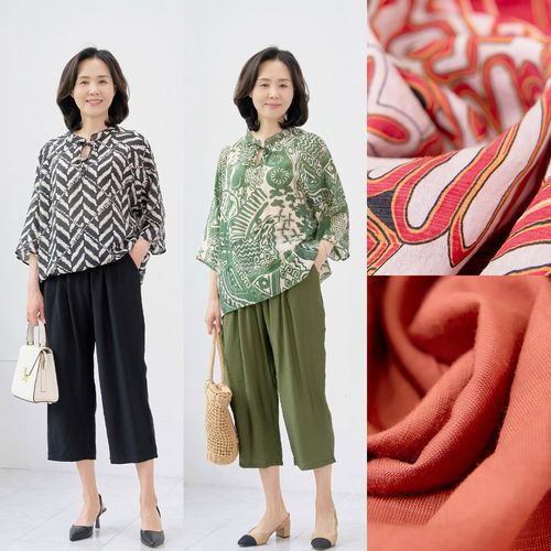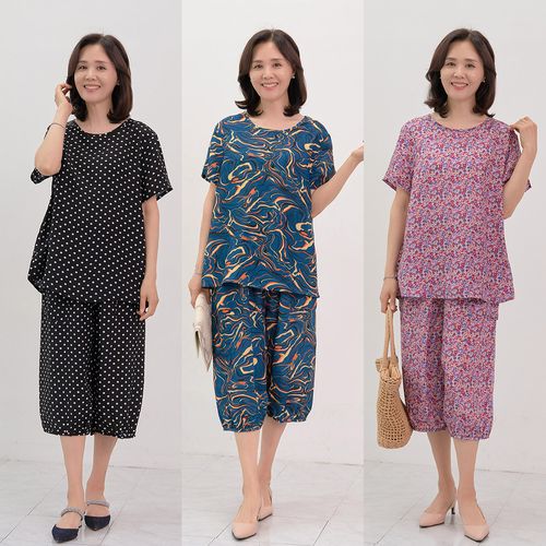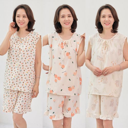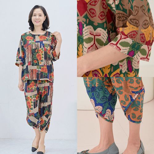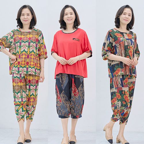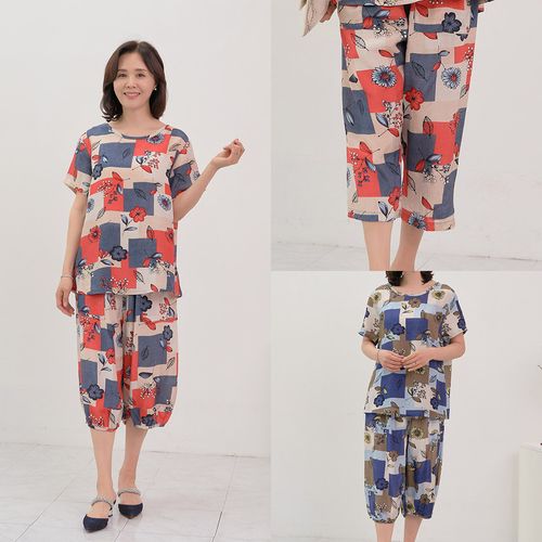 - 아사 나염 한벌 여름 7부 상하 홈웨어 튤립 바지