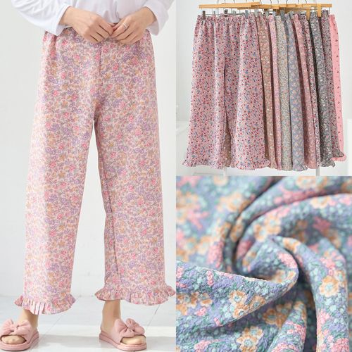 - 꽃나염 레이스 인조인견 통바지 플리츠 찰랑 홈웨어