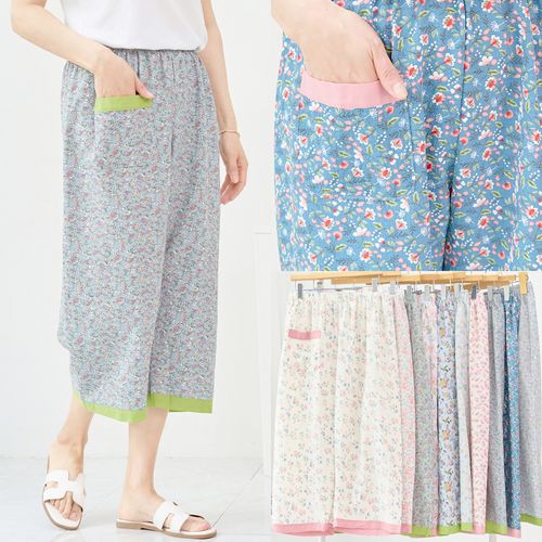 - 보드람 꽃 바지 홈웨어 잠옷 무늬 배색 여름 츄리닝