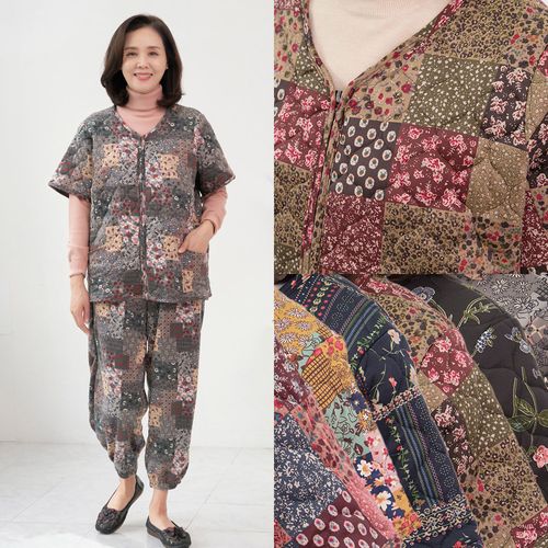 - 꽃무늬 홈 상하 세트 국내생산 겨울 면 실내복