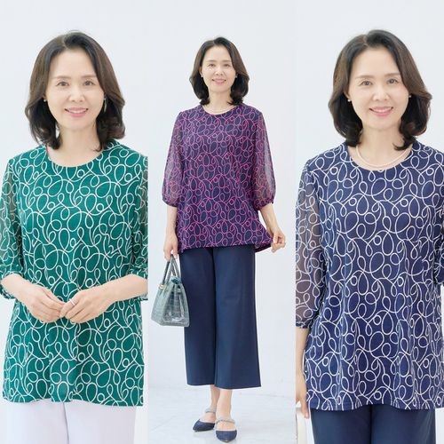 - 썸머링 블라우스 국내생산 시스루 쉬폰 소매 100까지