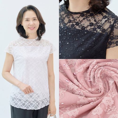 - 불망 캡 블라우스 망사 시스루 국내생산 스팽글