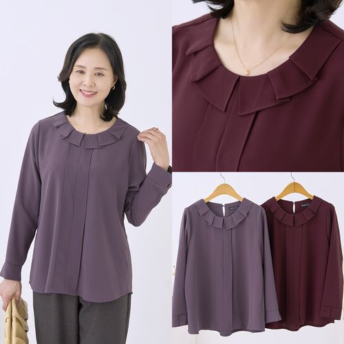 - 건반 블라우스 국내생산 긴팔 카라 하객 라운드넥