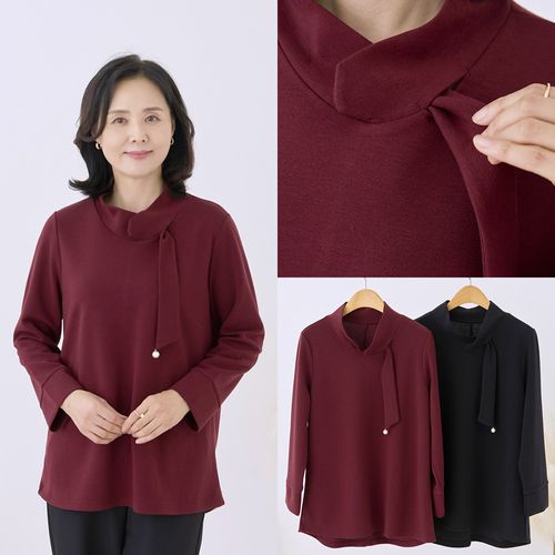 - 진주 타이 블라우스 국내생산 긴팔 간절기 겨울