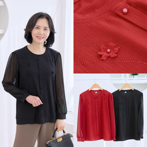 - 단추 꽃잎 블라우스 입체 포인트 시스루 버튼