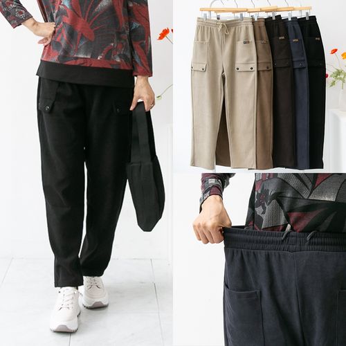 - 골덴 투 기모 바지 면 단추 카고 주머니 허리끈