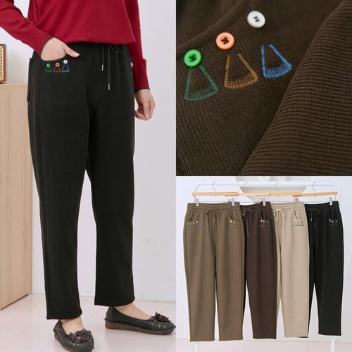 - 엄마옷 마미소 꽃 자수 골덴 바지 기모 무늬 스판 코듀로이 할머니 빅사이즈 40 70 마담 중년 여성 옷