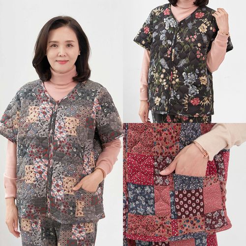 - 따수미 밍크 꽃 조끼 김장 요양원 꽃무늬 양털