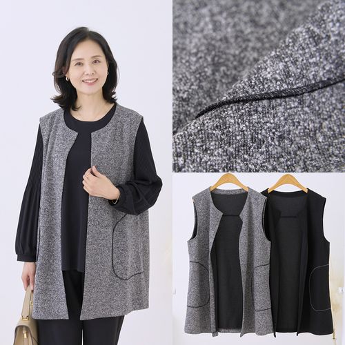- 부클 브이 롱 조끼 국내생산 민소매 레이어드