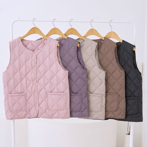 - 심플 단추 마름모 누빔 조끼 기본 경량 패딩 퀼팅