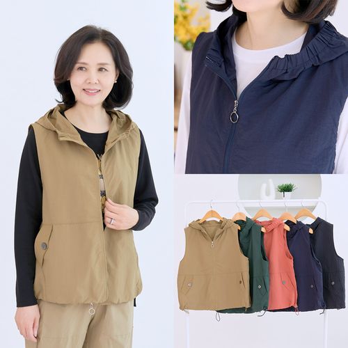 - 후드 지퍼 조끼 간절기 스트링 포켓 캐주얼
