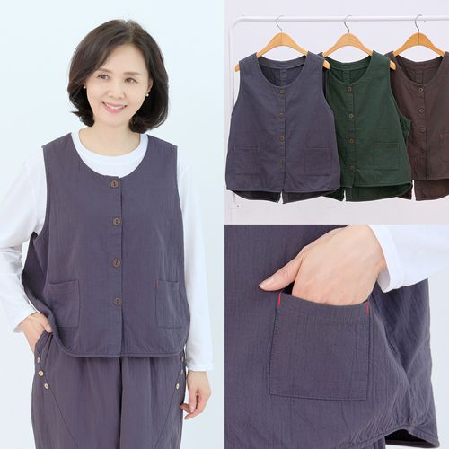 - 누빔 플리츠 조끼 국내생산 주름 단추 누빔 겨울