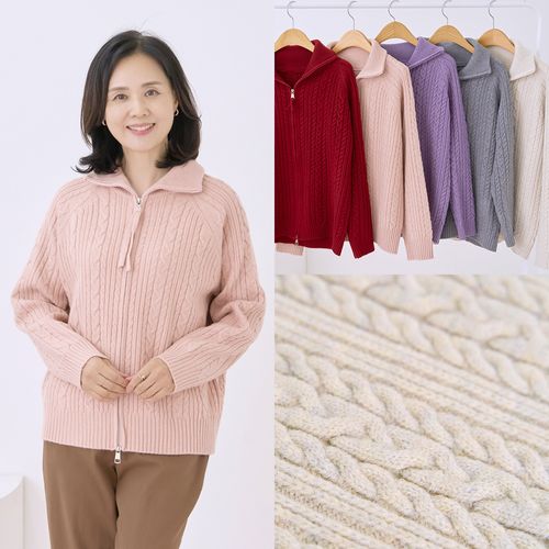 - 꽈배기 니트 가디건 집업 카라 오픈 66 99 울