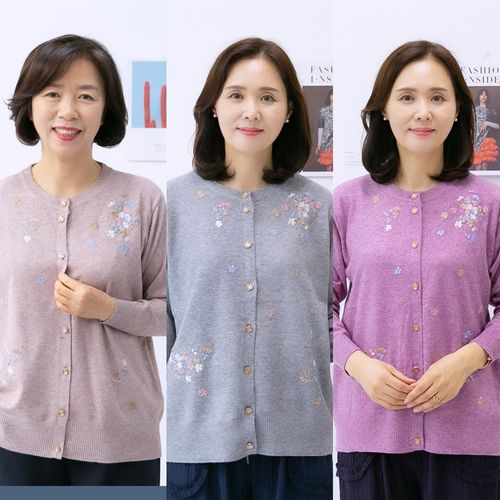- 큰꽃 가디건 자수 단추 라운드 비스코스