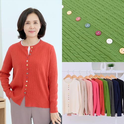 - 오색 단추 가디건 배색 꽈배기 라운드넥 크롭 봄 데일리